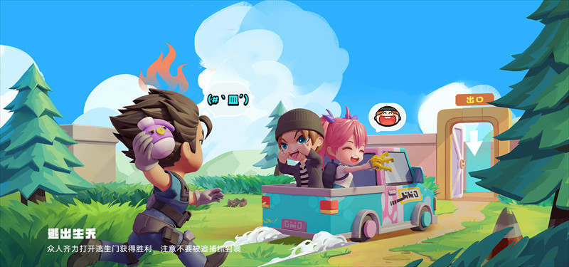 众人齐力打开逃生门获得胜利,注意不要被追捕抓到噢