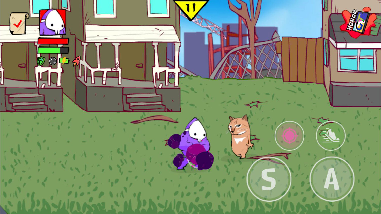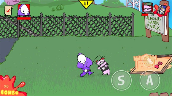 3、点击轻拳和重拳击败当前场景的小朋友就可以前往下一关。