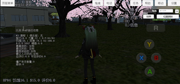 玩法:很普通的玩法,无僵尸模式,照着课表上课,吃东西,上社团活动,加入或退出社团,和学生老师互动。
