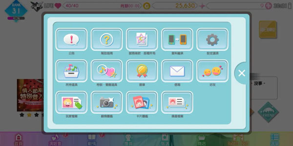 【14】剧情。(可观看游戏主线剧情,打歌解锁支线剧情,还有特别篇剧情。第三部剧情只有在解锁第二部剧情后才会显示。)