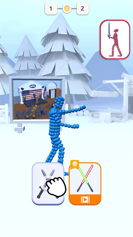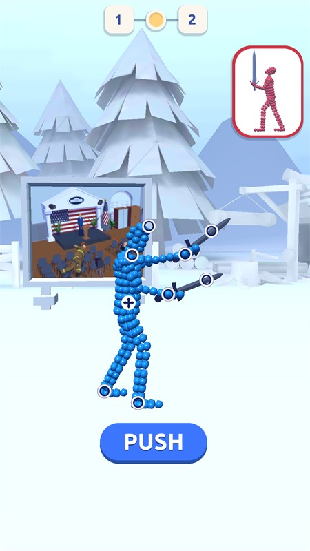 2、玩家可以根据右上角敌人的姿势,控制自己的角色关节调整进攻姿势。