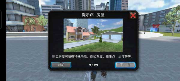 5、购买房屋可获得特殊功能,例如车库、重生点、治疗等等。使用车库存放和撤回您喜欢的车辆。进入机场购买多架飞机,包括军用车辆。