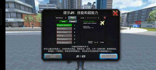 10、为角色获得新的关卡。您可以通过杀死敌人,在商店购买商品,黑客攻击,任务,工作(出租车等)来获取经验。每增加一个新级别,您就会获得技能点。将这些点花在角色技巧或超级能力上。