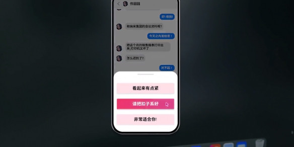 1、佟圆圆问今天她的穿搭怎么样,选择“请把扣子系好”。