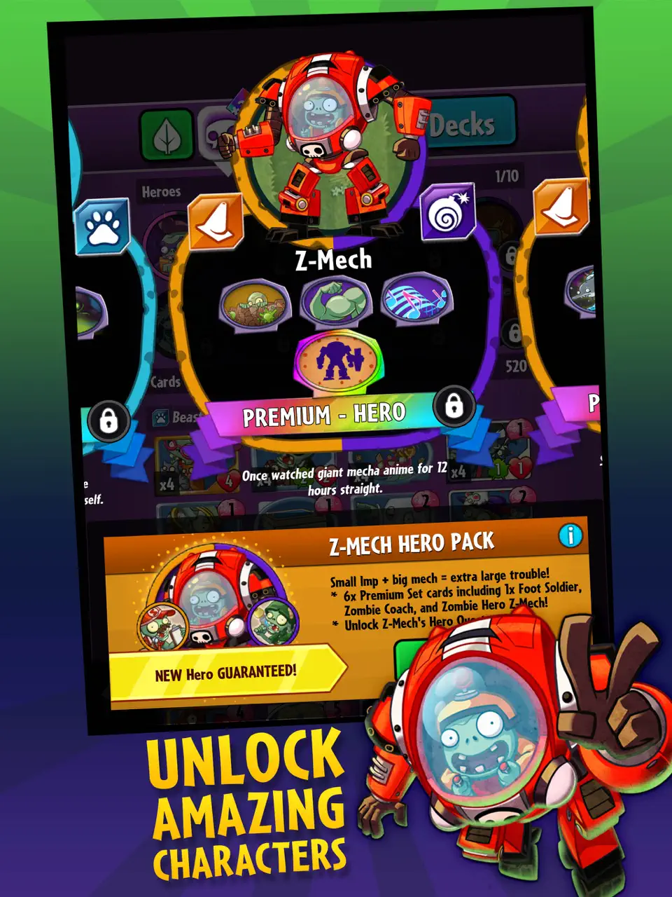 每个英雄都需要一个船员。通过收集或制作数百张卡片,从你知道和爱的PvZ角色,到大胆的原始植物和僵尸,建立你的和多样化你的技能。