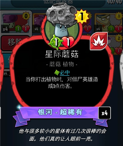 在此卡组中,配合星际蘑菇能拉开卡差,并且慢性消耗血量,如果好几个回合对面都解不掉你的星际或是覆盖莓果星球,就离胜利不远了。
