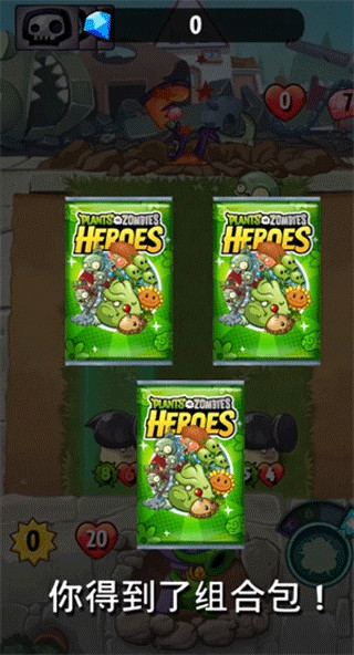 5、成功过关后,就能得到组合包奖励,里面有很多的植物卡牌。