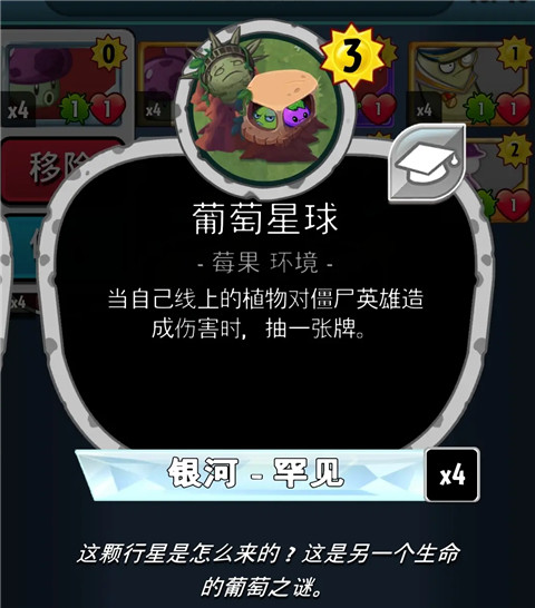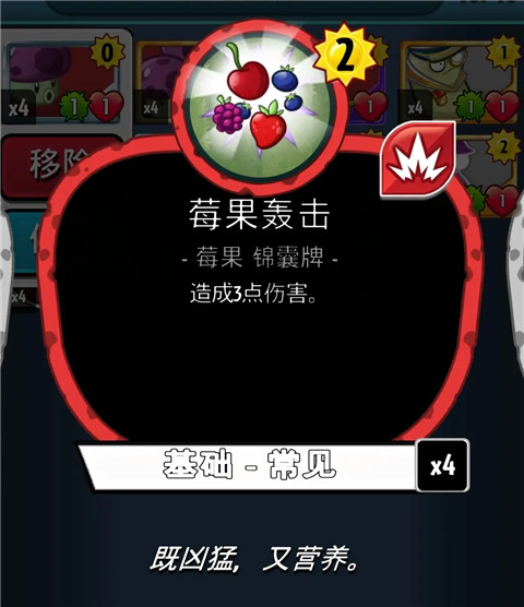 3费,莓果标签,当自己线上的植物对僵尸英雄造成伤害时,抽一张牌。