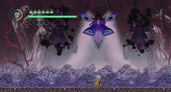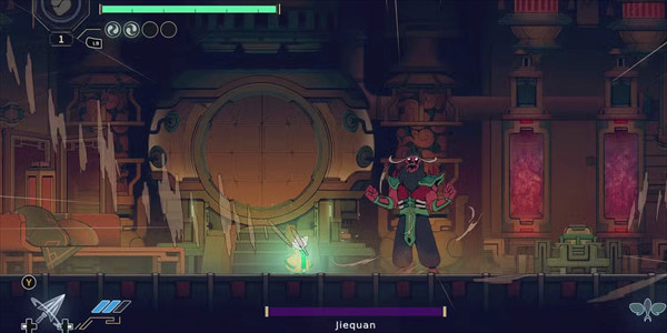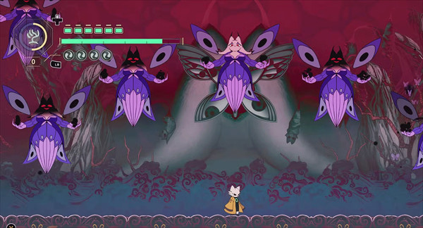 攻击与格档快速的不停交互切换的战斗节奏。利用格挡后所累积的能量,冲向敌人利用灌满『气』的符咒将敌人引爆。结合空中冲刺、二段跳、攀牆等传统2D平台动作游戏的操作交织出节奏明快的平台战斗。