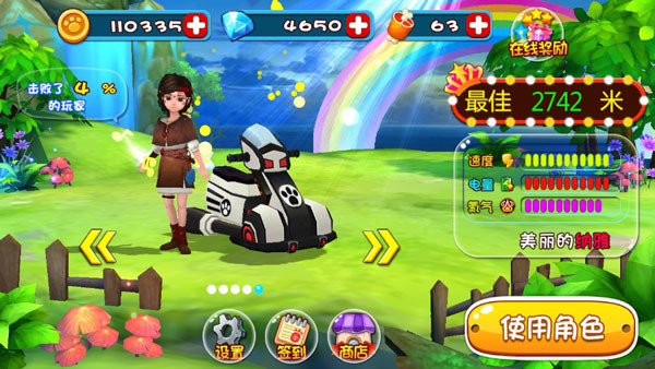 4、道具收集系统:游戏内分布着磁铁、火箭等多种道具,收集后可暂时提升角色能力,降低跑酷难度,增加游戏策略性,让玩家在游戏中更加游刃有余。