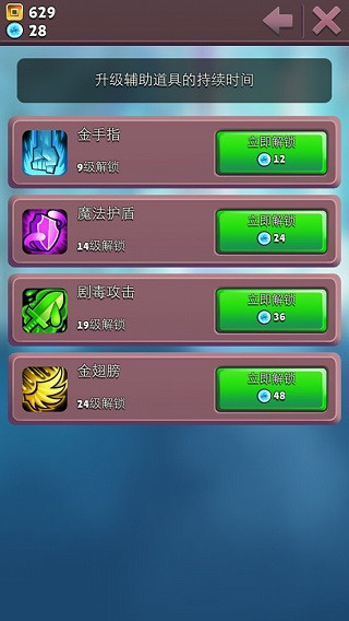 5、随机道具:点石成金、一击必杀的道具能帮你顺利的粉碎敌人。无敌护盾、飞天翅膀将敌人远远甩在脑后。