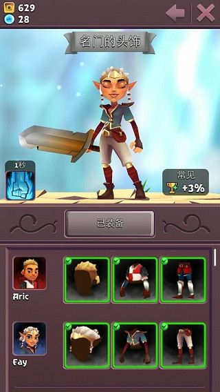 2、通过升级解锁更多人物;新人物除了外形各异外,还会获得种族天赋加成:精灵、魔女等更多新人物等你来选择;