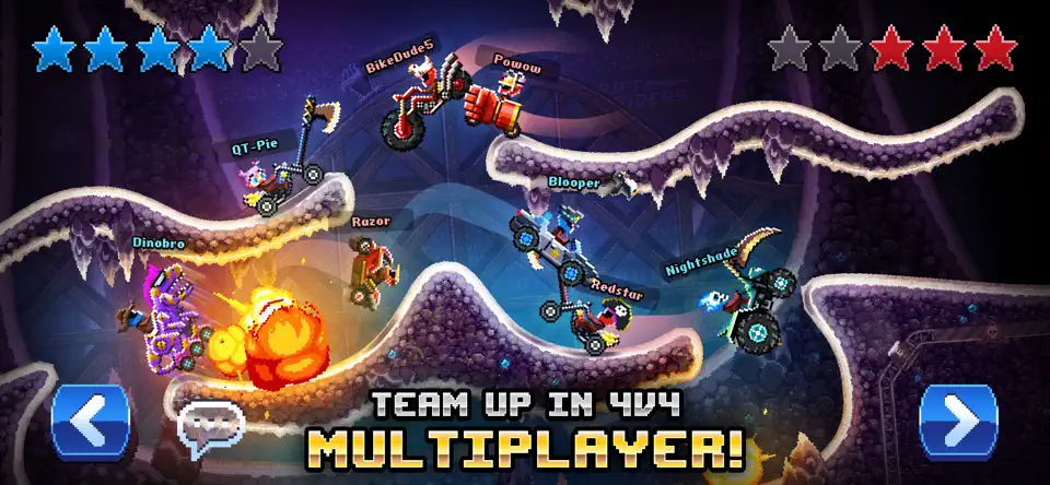 1、双人撞头赛车探索各种有恐龙、外星人和机器人的精彩任务。