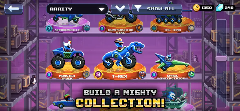 5、在奖品机使用收集的虚拟点数,就可以一边玩游戏,一边解锁各式各样的车辆和赛场。