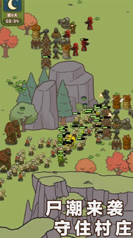 在村庄外围建造围墙、箭塔、陷阱等防御设施,形成多层次防线。夜间尸潮来袭时,系统自动触发战斗,但玩家可提前优化布局,利用地形与建筑协同最大化杀伤效果。