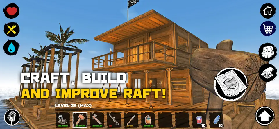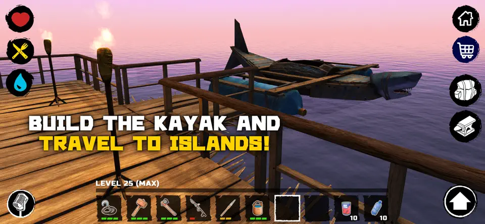 2、玩家需要在木筏上建立一个真正安全的庇护所,为此还得不断升级木筏,这样才能挡住鱼类的攻击。