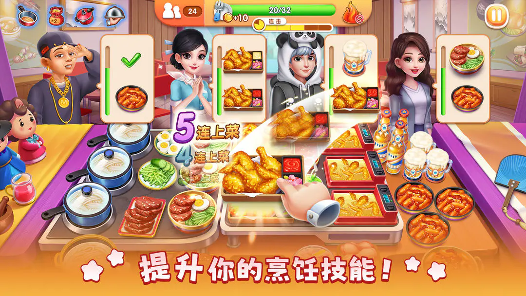2、是大厨也是老板,满足客人的需求,细心耐心的照顾他们,赚到足够的金币。