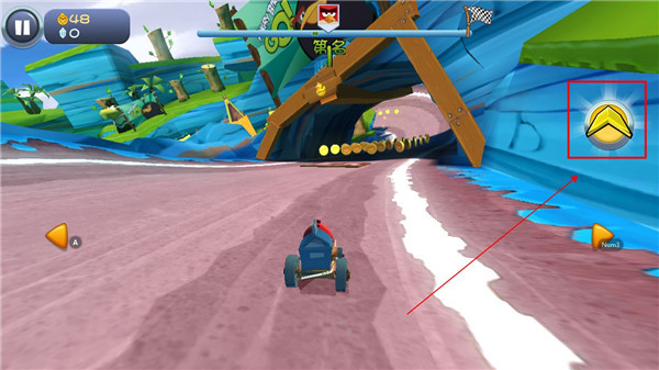 2、如下图所示,发射成功后玩家们可以通过屏幕的虚拟按键来操控卡丁车进行移动。