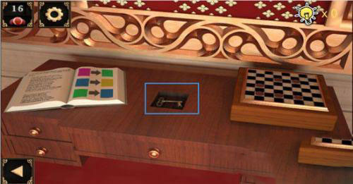 5、完成书写后,我们收起那张提示纸。在桌子的下方,我们找到了一把小柜子的钥匙。