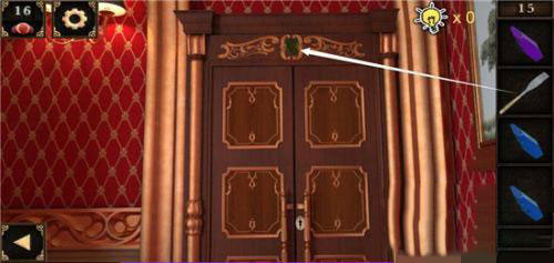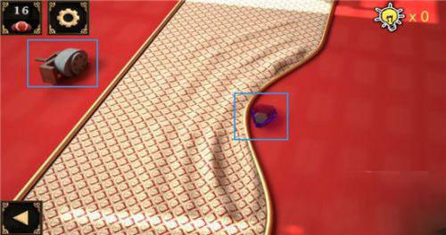 2、在地毯上,我们发现了一个转笔刀,并在地毯下方找到了一颗宝石。