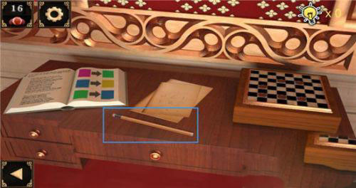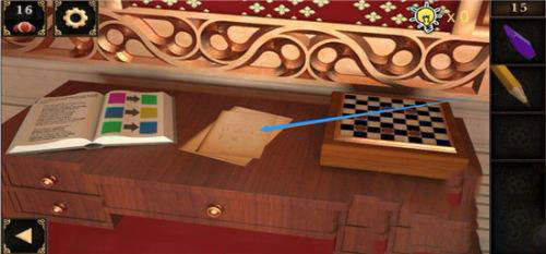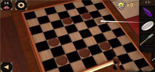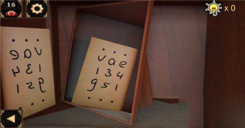 6、使用这把钥匙打开右侧的小柜子,我们得到了里头的小铲子和一枚棋子,此外,我们将提示纸放到镜子前,镜子中反射出的线索终于变得清晰可懂了。