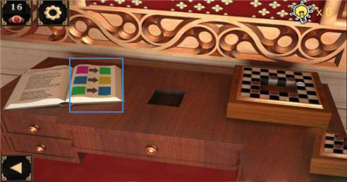 12、回到右侧的桌子旁,我们观察那本书,发现四种颜色中黄色是相对独立的。