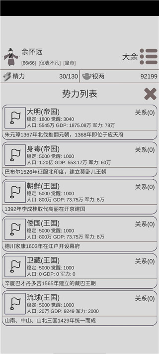 -势力那一栏没办法宣战,应该是功能还没做好。