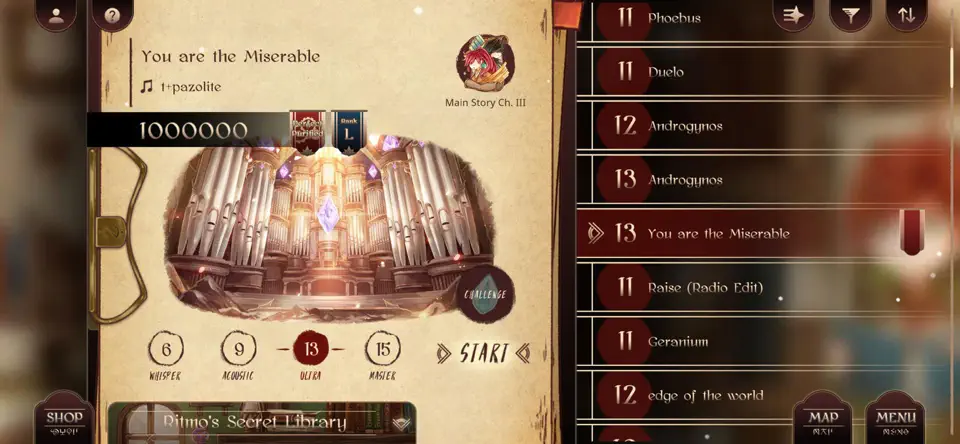 游戏分为主线章节、支线章节和扩充章节,每个章节都有不同的故事和挑战。玩家可以根据自己的喜好选择不同的音乐进行挑战,体验不同的游戏乐趣。