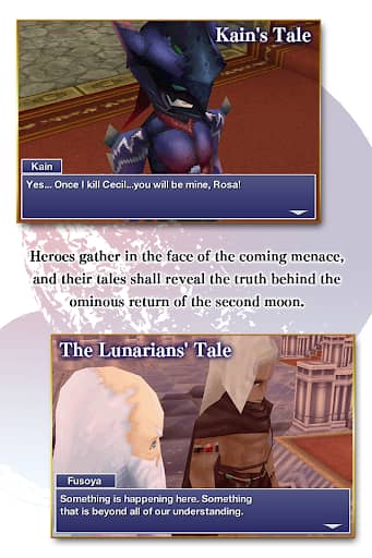 最终幻想4月之归还是由PC移植的角色扮演手游,作为最终幻想4的后传,讲述王子赛欧多瑞的冒险故事。最终幻想4月之归还游戏重制了3D模型与过场动画,提升画质并加入经典BGM,采用半即时战斗系统,可自由切换多名角色作战。最终幻想4月之归还游戏中,玩家将与凯恩、罗莎等熟悉角色踏上前往月球的旅程,在对抗强敌的同时揭开神秘力量的真相。