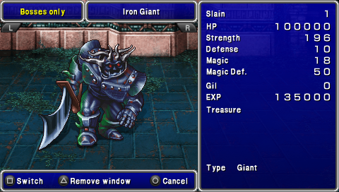 1、铁巨人,看看那HP就觉得自己矮了一大截,攻击也高达196.突破口可能就是那10的防御了。他的种族是巨人。给站在前排的人带巨人护手吧。当他收到魔法攻击时会用陨石反击,死之前也会用陨石。建议白魔法上升时去打。乖乖用物理攻击吧