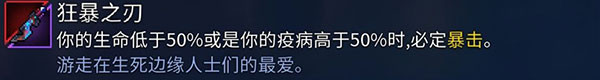 原因:出色的手感,配合变异开放性伤口,可以达到100%暴击,属性条可以洗对流血效果增加%伤害的属性,可以说是完美,如果非要挑毛病的话和刺客匕首一样攻击距离短