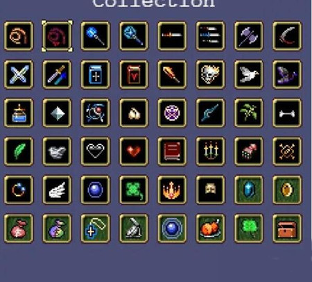 鞭子:在玩家角色贴图的上方生成一个可以穿透的近距离水平鞭影,方向为角色面对的方向。可享受投射物增加被动的加成,方向在面朝方向和背对方向之间循环,并且位置越来越高。可以通过快速转身的方法将鞭影集中在一边。需要Hollow heart进阶,进阶后伤害提升并且可以吸血。