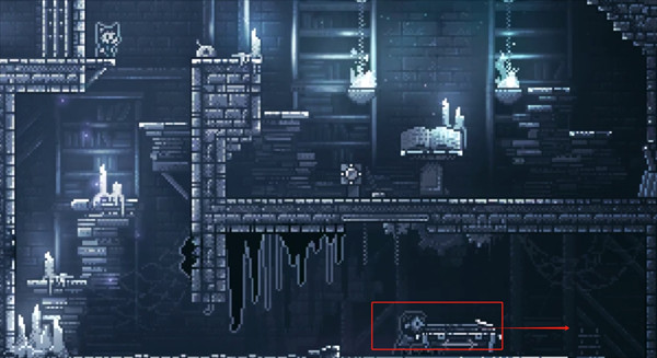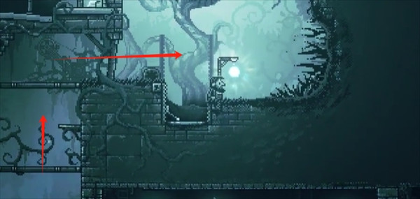 4、继续向右前进,砍断挡路的藤蔓后进入城堡区域,前往右下方的火盆处。