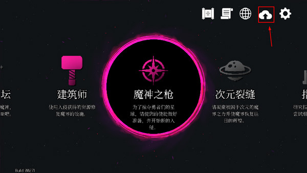 1、打开地牢小队中文版,点击右上角上传按钮;