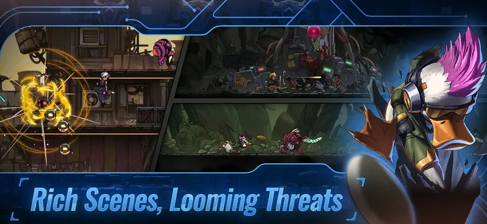 十余位风格各异的鸭卫集结出击,每位角色都拥有独特的战斗机制:招架拼刀、肉搏连击、极限蓄力、躲闪射击……总能找到自己的本命鸭卫。