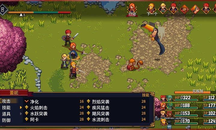 采用回合制战斗系统,利用不同队员的技能和能力,制定战术以击败敌人。