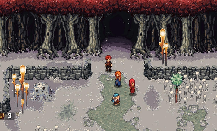 精致的16位像素美术呈现宏大场景与细腻角色表情,配以经典JRPG风格音乐营造沉浸氛围。虽致敬黄金时代作品,但优化了迷宫难度与跑图机制,避免机械化重复劳动,保持紧凑节奏。