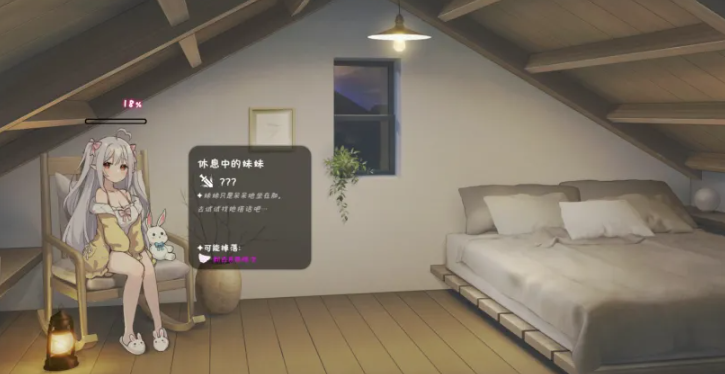 和存在感薄弱的妹妹一起简单生活游戏中,通过选择提升好感度,解锁场景。游戏时长视版本而定。