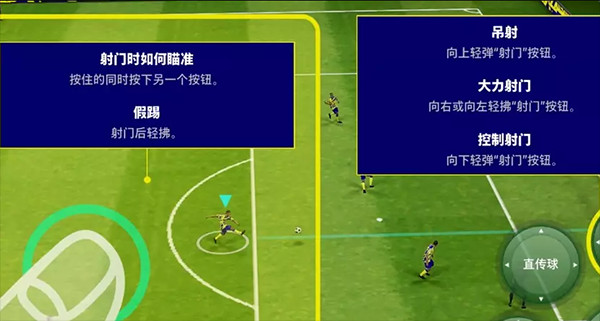 正常射门就按照图中的说明来,假射也是十分实用,新玩家可以多多尝试,流畅之后就会是你杀死比赛的利器。