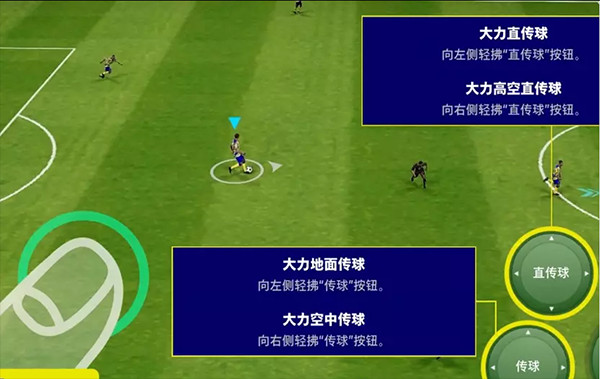 以前的空传是施压传球键后向上拖动,新版本是向右侧拖动,这一点比较重要,否则有时候二过一想进行高空传球的时候按照老版本操作就容易失误。