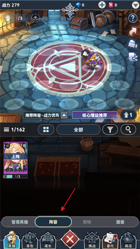 1、在集合吧七骑士点击主界面【英雄】按钮。