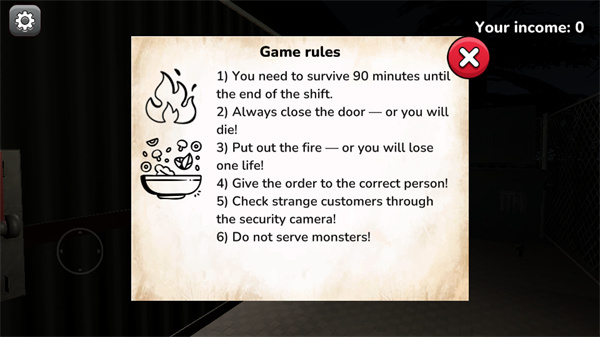 恐怖沙威玛异常小吃摊是恐怖冒险解谜类游戏,玩家将在夜间小吃摊值班,化身侦探寻找隐藏在顾客中的怪物。恐怖沙威玛异常小吃摊游戏采用第一人称视角,让玩家能够身临其境地观察每一位顾客的细微动作和异常行为。昏暗的环境布置、紧张的音效和精心设计的恐怖场景,使整个游戏充满悬疑与紧张感。恐怖沙威玛异常小吃摊下载玩家需要在有限的时间内做出判断,破解谜题并避免危险,从而体验到独特的惊悚挑战。