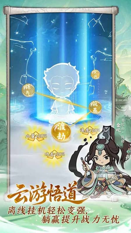 5、云游悟道:离线挂机积累资源,轻松提升战力。