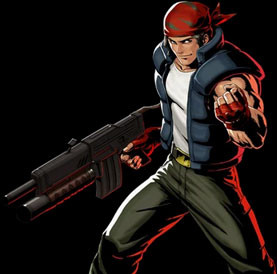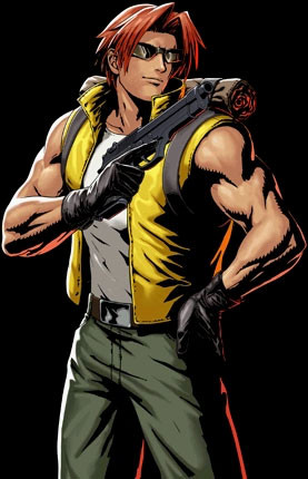 刀砍速度很快且对攻击范围内的所有敌人都有效,其特技机炮拳破坏速度更是一绝(威力5x8,可跳跃取消),单关内中弹2次才算死(有例外是一击死)。他的缺点是走路较慢(中弹后起身走路还会变更慢),而且吃到枪或炸弹时,弹药入手数量比别人少一半。