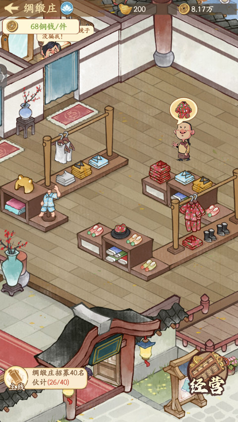 5、建造好后进入店铺,玩家可点击经营来招募员工、解锁商品来赚取铜钱;