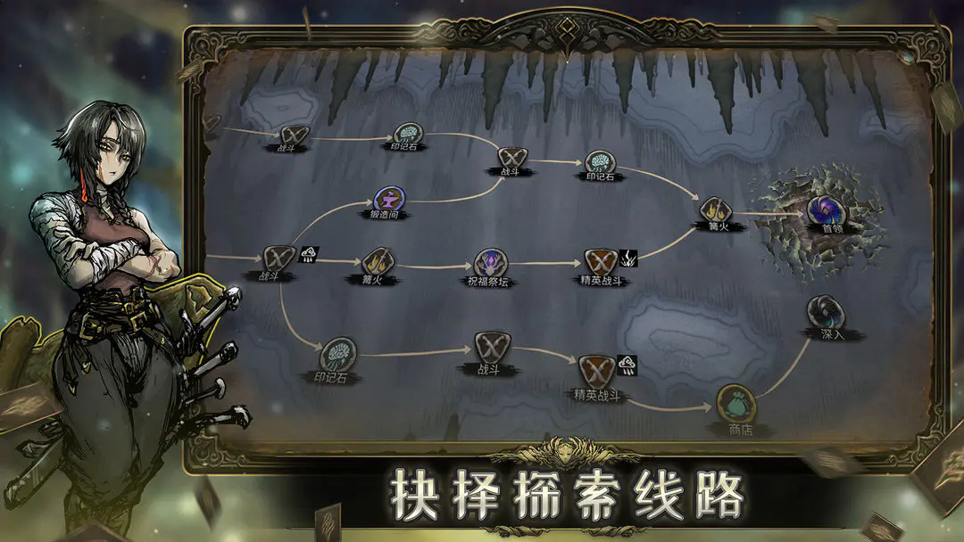 魂坠深境通过收集卡牌,祝福,印记,护符来进行构筑,在冒险过程中强化你的角色。游戏中有500张以上卡牌,120种以上祝福,48种印记,103种护符。