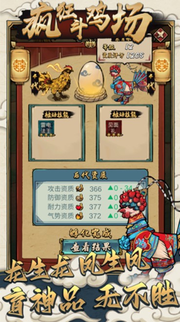 1. 提升斗鸡属性:通过训练场和比赛获得经验值,提升斗鸡的等级和属性。不同品质的斗鸡在升级时提升的属性也不同。
