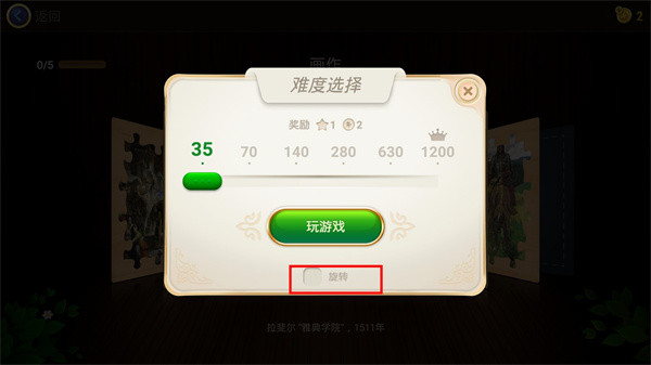 5、还可以选择难度和旋转,难度越到我们获得的奖励也就越多;
