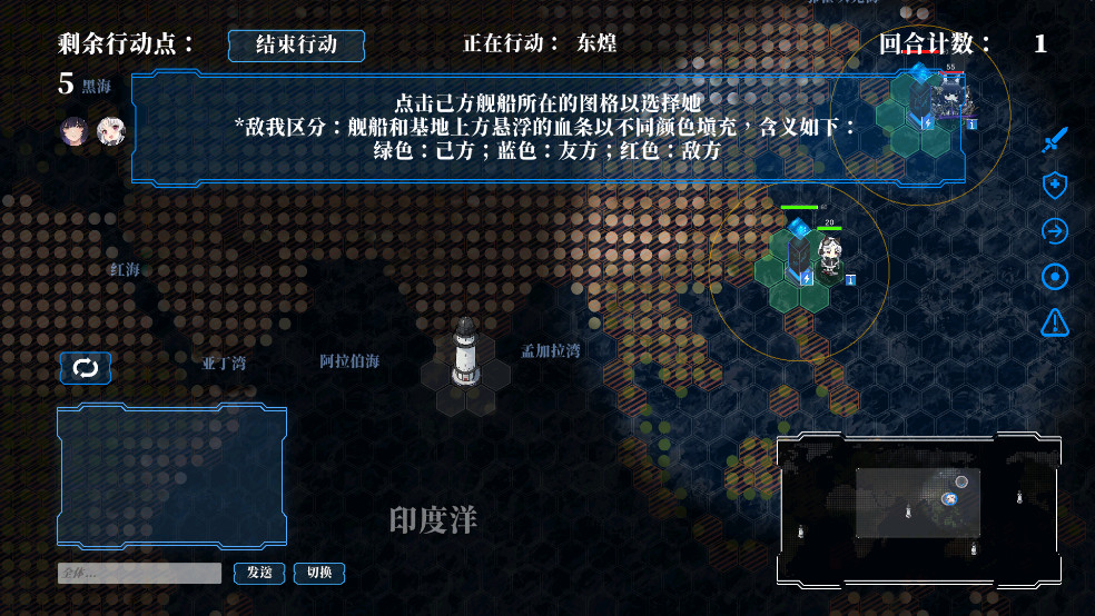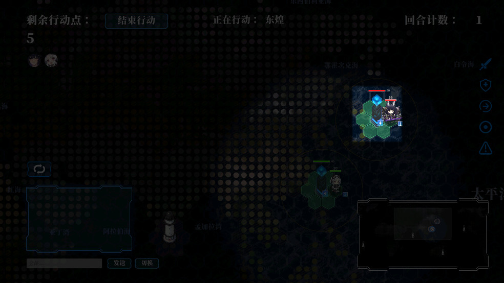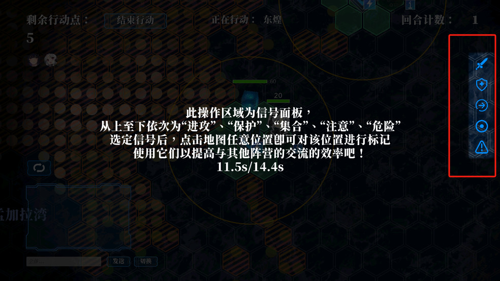 在碧蓝海战棋手机版左侧区域从上至下依此为“进攻”“保护”“集合”“注意”“危险”。