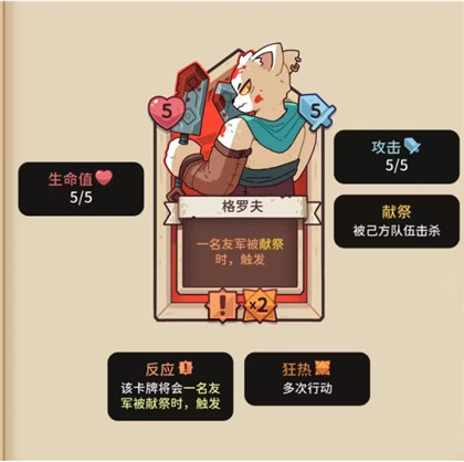 2、卡牌属性:卡牌具有攻击力、生命值等属性,左上角的“红心”代表生命值,右上角的“剑”代表攻击力,当卡牌的生命值归零时,该卡牌就会负伤退场。